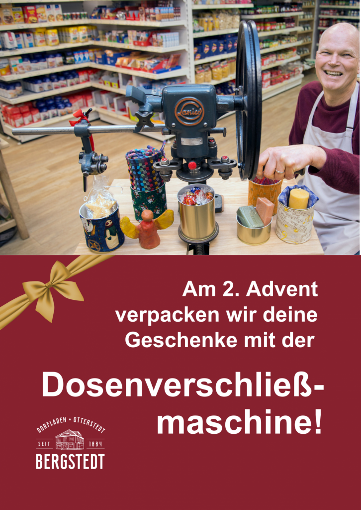 Auch in diesem Jahr bieten wir wieder die Dosenverschließmaschinen an, in der ihr ganz origienell eure Weihnachtsgeschenke verpacken lassen könnt!
