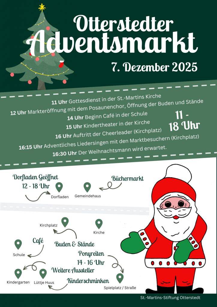 Traditionell am 2. Advent findet in Otterstedt wieder der Adventsmarkt statt. Der Dorfladen öffnet wie jeden Sonntag von 8 – 10 Uhr und zusätzlich von 12 – 18 Uhr.